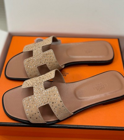 • [홍콩명품.Hermes] 에르메스 25SS 로고 여성 레더 가죽 샌들 슬리퍼 (카라멜), SE4958, H3, 명품스니커즈,운동화,구두,로퍼,하이탑,신발