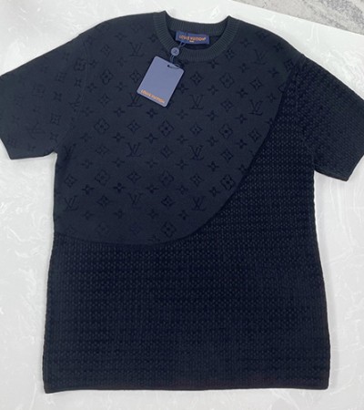 [홍콩명품.LOUIS VUITTON] 루이비통 25SS 로고 모노그램 니트 반팔 티셔츠 (블랙), BM21007, JU, 홍콩명품의류,구매대행,온라인명품 > 남자의류