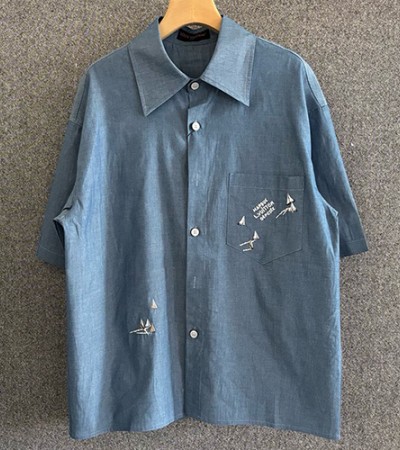 • [홍콩명품.LOUIS VUITTON] 루이비통 25SS 로고 그래픽 데님 반팔 남방 셔츠 + 쇼츠 반바지 상하의 세트, BM21018, JU, 홍콩명품의류,구매대행,온라인명품