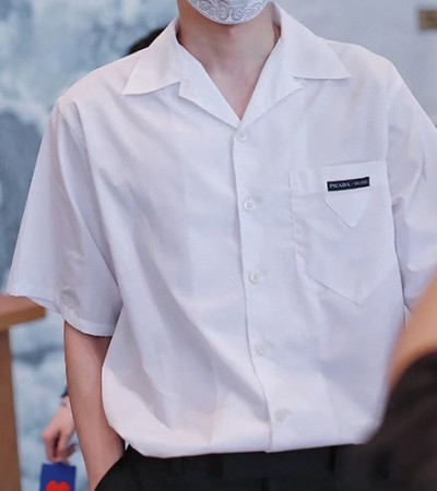 [홍콩명품,PRADA] 프라다 25SS 로고 포플린 반팔 남방 셔츠 (화이트), BM21096, KOO, 홍콩명품의류,구매대행,온라인명품 > 남자의류