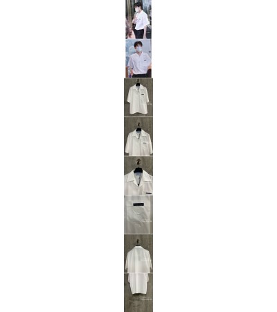 • [홍콩명품,PRADA] 프라다 25SS 로고 포플린 반팔 남방 셔츠 (화이트), BM21096, KOO, 홍콩명품의류,구매대행,온라인명품