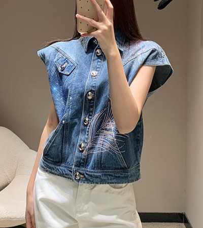 • [홍콩명품.CHANEL] 샤넬 25SS 로고 여성 스터드 장식 슬리브리스 데님 자켓, BM21118, TBG, 홍콩명품의류,구매대행,온라인명품