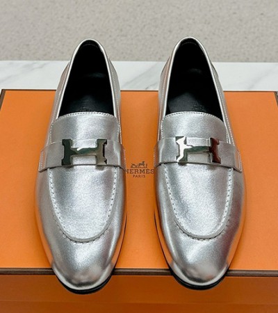 • [홍콩명품.Hermes] 에르메스 25SS 로고 여성 레더 가죽 구두 로퍼 (실버), SE5090, H3, 명품스니커즈,운동화,구두,로퍼,하이탑,신발