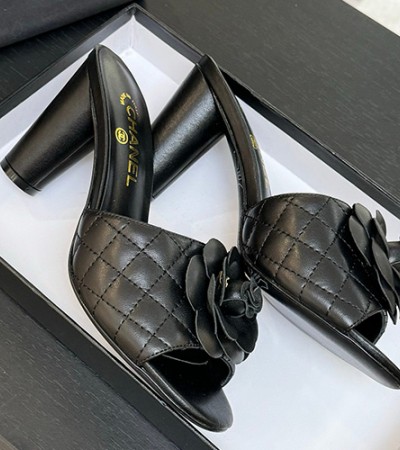 [홍콩명품.CHANEL] 샤넬 25SS 로고 여성 플라워 장식 레더 가죽 퀄팅 굽 샌들 (블랙), SE5119, GHS, 명품스니커즈,운동화,구두,로퍼,하이탑,신발 요약정보 및 구매
