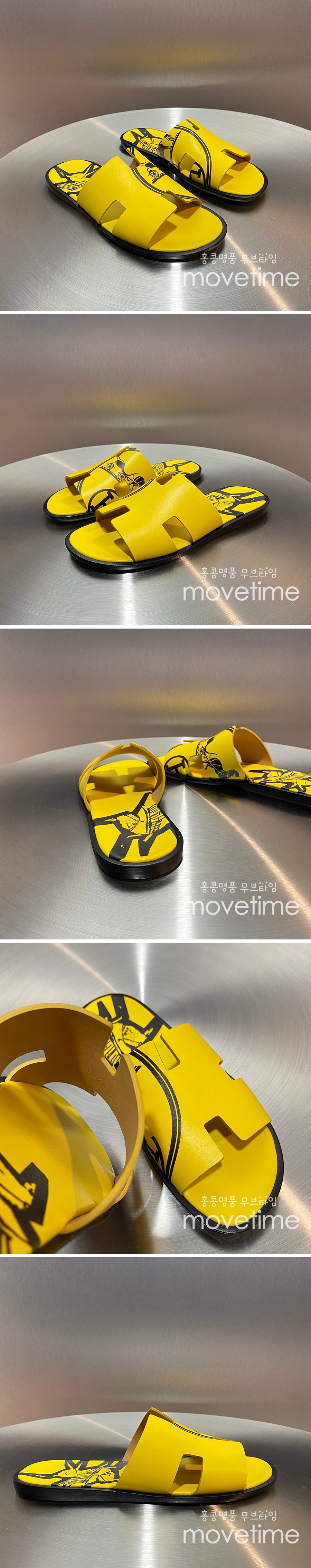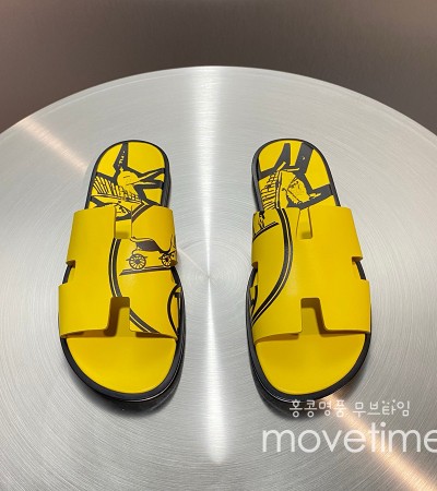 • [홍콩명품.Hermes] 에르메스 25SS 로고 그래픽 이즈미르 레더 가죽 슬리퍼 (노랑), SE5198, GHS, 명품스니커즈,운동화,구두,로퍼,하이탑,신발