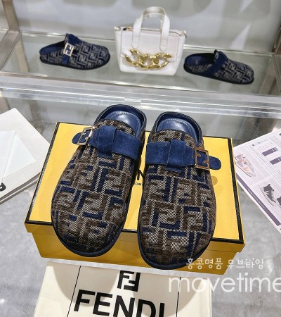 • [홍콩명품,FENDI] 펜디 25SS 로고 남여 FF패턴 레더 가죽 샌들 슬리퍼 (브라운-블루), SE5278, GHS, 명품스니커즈,운동화,구두,로퍼,하이탑,신발