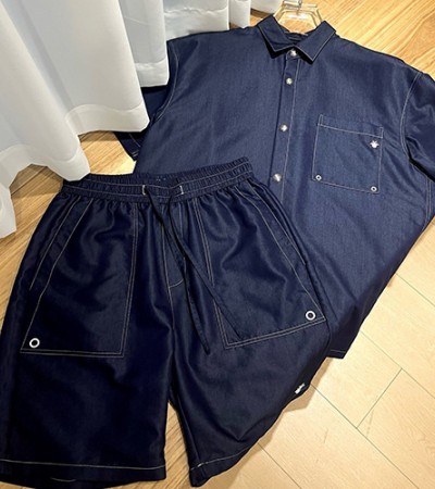 • [명품레플리카,Christian Dior] 디올 25SS 로고 자수 데님 반팔 남방 셔츠 + 데님 쇼츠 반바지 상하의 세트, BM21164, G5, 홍콩명품의류,구매대행,온라인명품