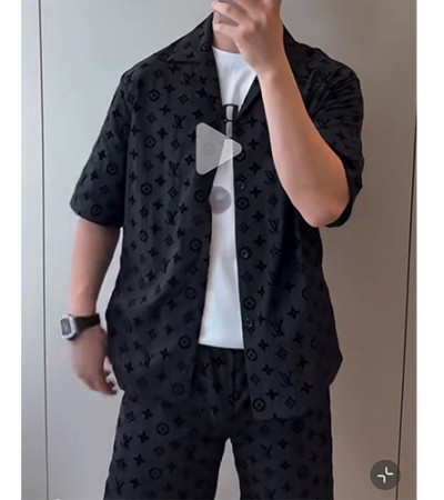 • [명품레플리카.LOUIS VUITTON] 루이비통 25SS 로고 모노그램 반팔 남방 셔츠 + 쇼츠 반바지 상하의 세트 (다크그레이), BM21171, JU, 홍콩명품의류,구매대행,온라인명품
