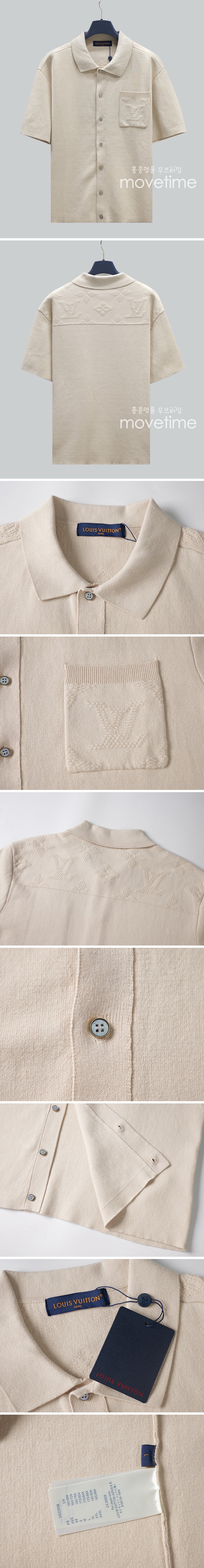 [홍콩명품.LOUIS VUITTON] 루이비통 25SS 로고 카라 오픈 반팔 티셔츠 1AHCA0 (베이지), BM21317, JU, 명품레플리카,미러급,온라인쇼핑몰사이트 요약정보 및 구매