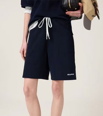 • [홍콩명품,MIU MIU] 미우미우 25SS 로고 자수 쇼츠 반바지 (블랙), BM21367, JU, 명품레플리카,미러급,온라인쇼핑몰사이트