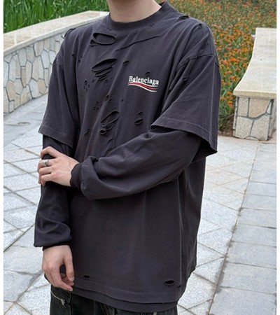 [홍콩명품.BALENCIAGA] 발렌시아가 25SS 웨이브로고 프린트 빈티지 2톤 긴팔 티셔츠 (네이비), BM21515, JL, 명품레플리카,미러급,온라인쇼핑몰사이트 > 남자의류