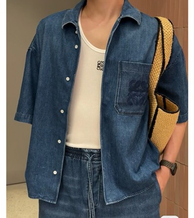 [홍콩명품.LOEWE] 로에베 25SS 로고 데님 반팔 남방 셔츠, BM21653, KK, 홍콩명품가방,명품쇼핑몰,크로스백,핸드백,구매대행 > 남자의류