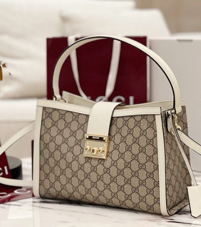 [홍콩명품.Gucci] 구찌 25SS 로고 패드록 미디엄 탑 핸들 핸드백 베이지 화이트 GG 패브릭 838992, BGM5041, GU2, 홍콩명품가방,명품쇼핑몰,크로스백,핸드백,구매대행 > 가방
