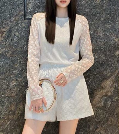 • [홍콩명품.LOUIS VUITTON] 루이비통 25SS 로고 여성 긴팔 티셔츠 + 미니 쇼츠 반바지 핫팬츠 상하의 세트 (화이트), BM21781, TBG, 레플리카의류,미러급사이트