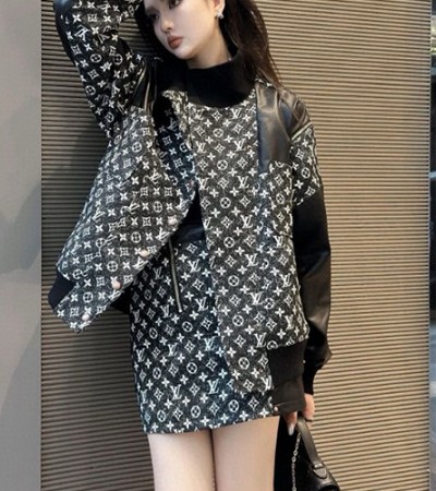 • [홍콩명품.LOUIS VUITTON] 루이비통 25SS 로고 모노그램 여성 소매 탈부착 데님 자켓 + 미니 스커트 상하의 세트 (블랙), BM21795, COCO, 레플리카의류,미러급사이트