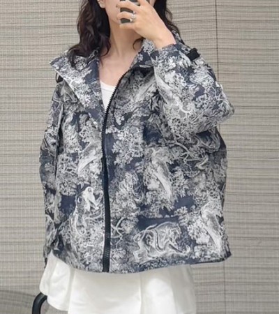 • [홍콩명품,Christian Dior] 디올 25SS 로고 여성 정글 패턴 후드 바람막이 자켓 (네이비), BM21994, MC, 레플리카의류,미러급사이트