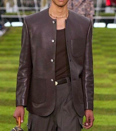 • [홍콩명품.LOUIS VUITTON] 루이비통 25SS 로고 레더 가죽 라운드넥 정장 자켓 (블랙), BM22069, TOM, 레플리카의류,미러급사이트