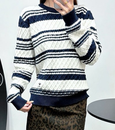• [홍콩명품,Christian Dior] 디올 25SS 로고 여성 스트라이프 니트 스웨터 (화이트), BM22150, JL, 레플리카의류,미러급사이트
