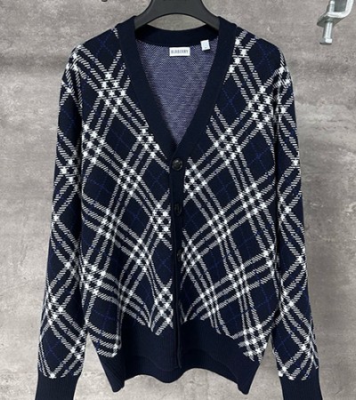 • [홍콩명품.Burberry] 버버리 25SS 로고 체크패턴 V넥 니트 가디건 (네이비), BM22205, KK, 레플리카의류,미러급사이트