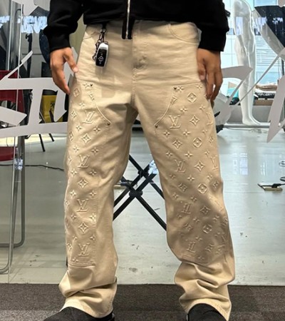 • [홍콩명품.LOUIS VUITTON] 루이비통 25SS 로고 모노그램 오버핏 데님 팬츠 진 청바지 (베이지), BM22311, KK, 레플리카의류,미러급사이트