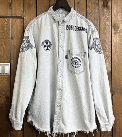• [홍콩명품.VETEMENTS] 베트멍 25SS 로고 자수 워싱 데님 남방 셔츠 (스카이블루), BM22386, RO, 레플리카의류,미러급사이트