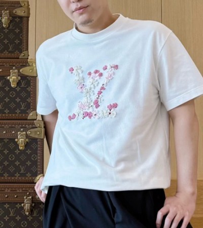 • [홍콩명품.LOUIS VUITTON] 루이비통 25SS 로고 플라워 자수 반팔 티셔츠 (화이트), BM22390, YS, 레플리카의류,미러급사이트