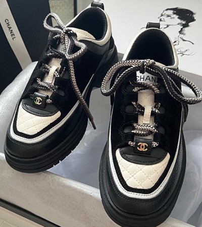 • [홍콩명품.CHANEL] 샤넬 25SS 로고 여성 레더 가죽 스니커즈 운동화 (2컬러), SE5518, S4W, 명품스니커즈,운동화,구두,로퍼,하이탑,신발