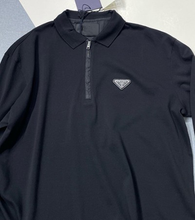 • [홍콩명품,PRADA] 프라다 25SS 삼각로고 하프지퍼 카라 폴로 긴팔 티셔츠 (블랙), BM22463, JL, 레플리카의류,미러급사이트