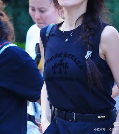 • [홍콩명품.Chrome Hearts] 크롬하츠 25SS 로고 여성 슬리브리스 탑 티셔츠 (블랙), BM22480, JL, 레플리카의류,미러급사이트