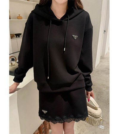 • [홍콩명품,PRADA] 프라다 25SS 삼각로고 후드 티셔츠 + 미니 스커트 상하의 세트 (2컬러), BM22504, MC, 레플리카의류,미러급사이트