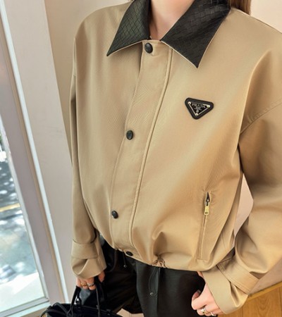 [홍콩명품,PRADA] 프라다 25SS 삼각로고 여성 카라 자켓 (베이지), BM22510, MC, 레플리카의류,미러급사이트 > 여성몰
