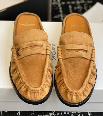 • [홍콩명품.YSL] 입생로랑 25SS 로고 여성 레더 가죽 뮬 슬리퍼 (카라멜), SE5548, GHS, 명품스니커즈,운동화,구두,로퍼,하이탑,신발