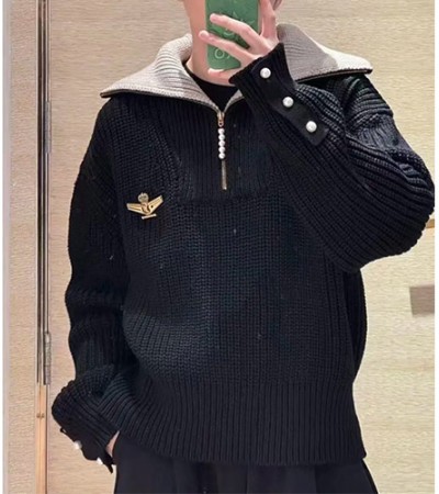 [홍콩명품.LOUIS VUITTON] 루이비통 25SS 로고 하프지퍼 하이넥 니트 스웨터 (블랙), BM22685, 레플리카의류,미러급사이트 > 남자의류