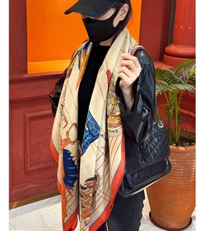 • [홍콩명품.Hermes] 에르메스 25SS 로고 패턴 140-140 실크 캐시미어 스카프 머플러 (5컬러), ET3137, 홍콩명품의류,구매대행,온라인명품