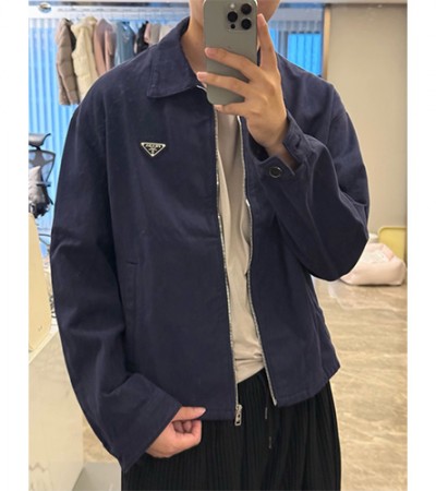 [홍콩명품,PRADA] 프라다 25SS 삼각로고 데님 카라 자켓 (네이비), BM22717, JL, 레플리카의류,미러급사이트 > 남자의류