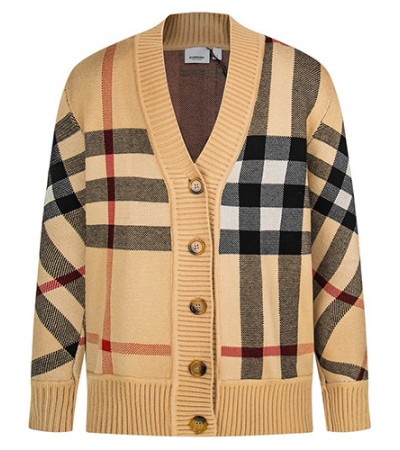 • [홍콩명품.Burberry] 버버리 25SS 로고 체크패턴 V넥 니트 가디건 (카라멜), BM22763, S1F, 레플리카의류,미러급사이트
