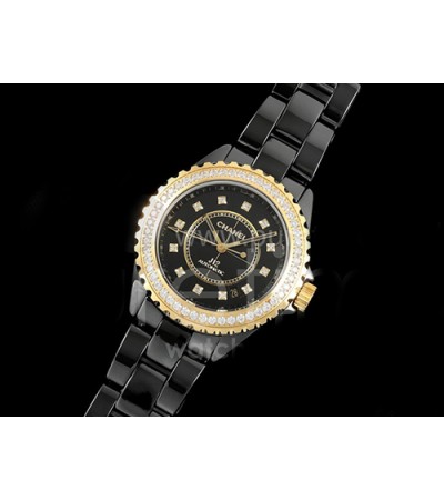 [홍콩명품.CHANEL] 샤넬 J13 38mm 블랙 세라믹 베젤 옐로우골드 다이아몬드 베젤 블랙 다이얼 요약정보 및 구매