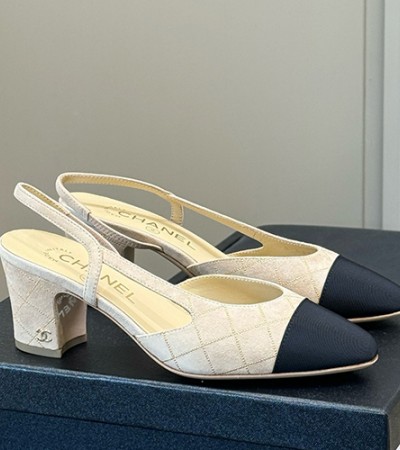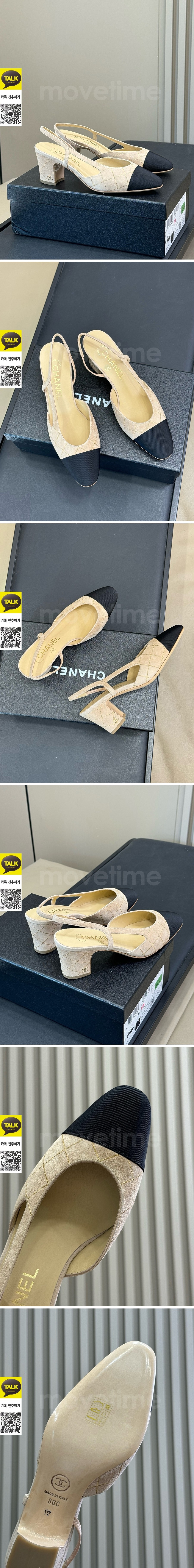 [홍콩명품.CHANEL] 샤넬 25SS 로고 여성 2톤 레더 가죽 굽 단화 구두 샌들 (베이지), SE5723, GHS, 명품스니커즈,운동화,구두,로퍼,하이탑,신발 요약정보 및 구매