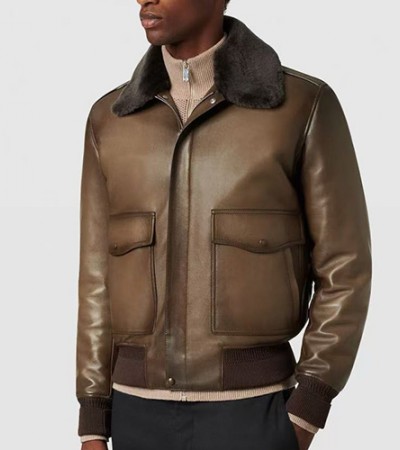 • [홍콩명품.BERLUTI] 벨루티 25SS 로고 레더 가죽 퍼 카라 봄버 자켓 (브라운), BM22812, TOM, 레플리카의류,미러급사이트