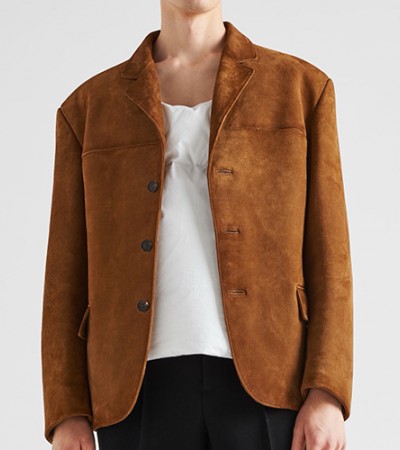 • [홍콩명품,PRADA] 프라다 25SS 로고 레더 가죽 정장 자켓 (브라운), BM22815, TOM, 레플리카의류,미러급사이트