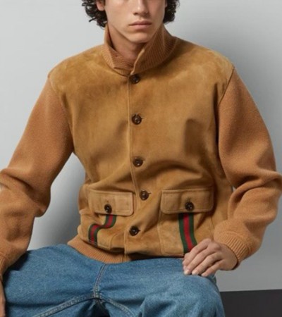 [홍콩명품.Gucci] 구찌 25SS 로고 레더 가죽 캐시미어 레이어드 하이넥 봄버 자켓 (카라멜), BM22836, TOM, 레플리카의류,미러급사이트 > 남자의류