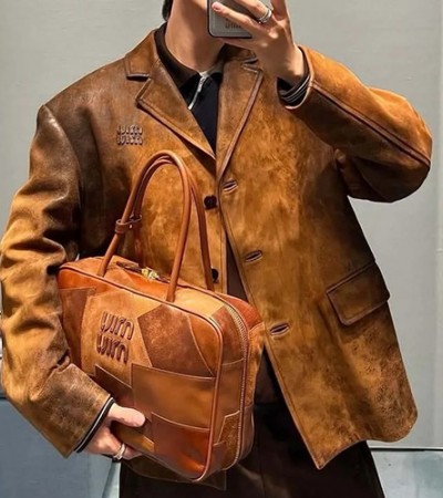 [홍콩명품,MIU MIU] 미우미우 25SS 로고 레더 가죽 정장 자켓 (브라운), BM22837, TOM, 레플리카의류,미러급사이트 > 남자의류