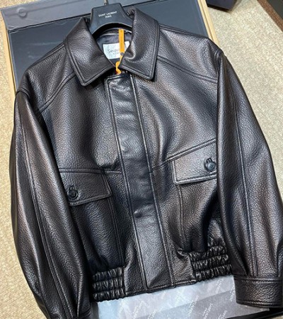 • [홍콩명품.YSL] 입생로랑 25SS 로고 레더 가죽 카라 봄버 자켓 (블랙), BM22879, PG, 레플리카의류,미러급사이트