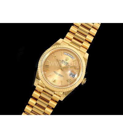 Case | 18K yellow gold plated solid 904L stainless steel case, Cu-W metal to increase watch weight to match the genuine gold watch weight, the whole watch is about 220g |