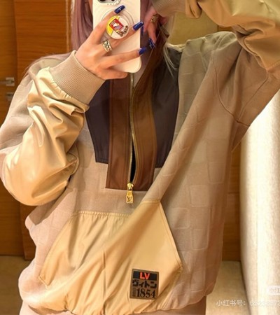 • [홍콩명품.LOUIS VUITTON] 루이비통 25SS 로고 다미에 터틀넥 하프지퍼 맨투맨 티셔츠 (베이지), BM22966, KB, 레플리카의류,미러급사이트