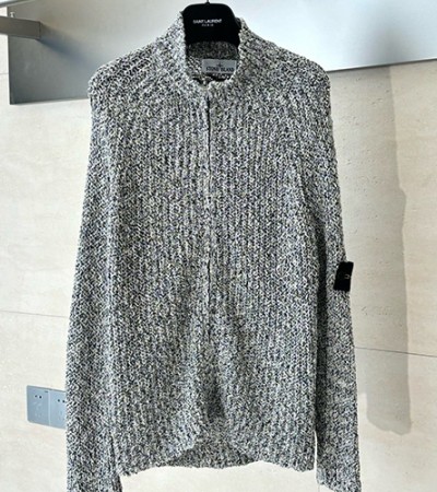 • [홍콩명품.Stone Island] 스톤아일랜드 25SS 로고 탈부착 터틀넥 니트 가디건 집업 자켓 (그레이), BM22979, KB, 레플리카의류,미러급사이트