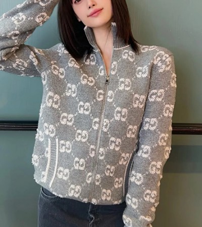 • [홍콩명품.Gucci] 구찌 25SS 로고 GG수프림 터틀넥 니트 가디건 집업 자켓 (그레이), BM23009, KK, 레플리카의류,미러급사이트