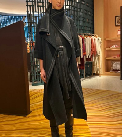 • [홍콩명품.Hermes] 에르메스 25SS 로고 여성 캐시미어 롱 코트 자켓 (블랙), BM23048, TOM, 레플리카의류,미러급사이트