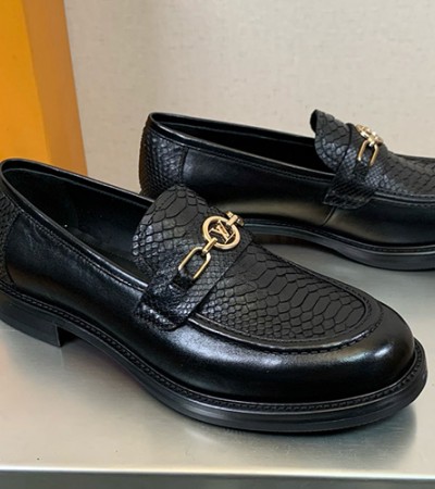 • [홍콩명품.LOUIS VUITTON] 루이비통 25SS 로고 레더 소가죽/뱀피 굽 로퍼 구두 (블랙), SE5786, S2, 명품스니커즈,운동화,구두,로퍼,하이탑,신발