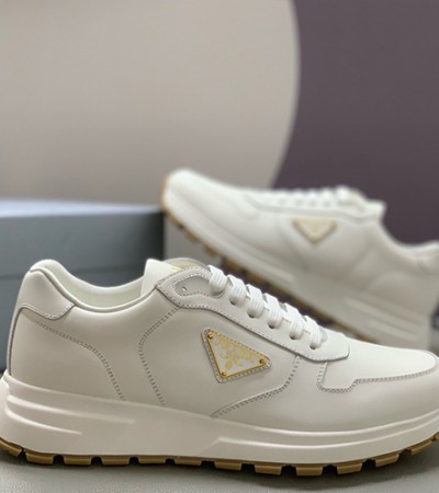 • [홍콩명품,PRADA] 프라다 25SS 삼각로고 레더 가죽 스니커즈 운동화 (화이트), SE5801, PMD, 명품스니커즈,운동화,구두,로퍼,하이탑,신발